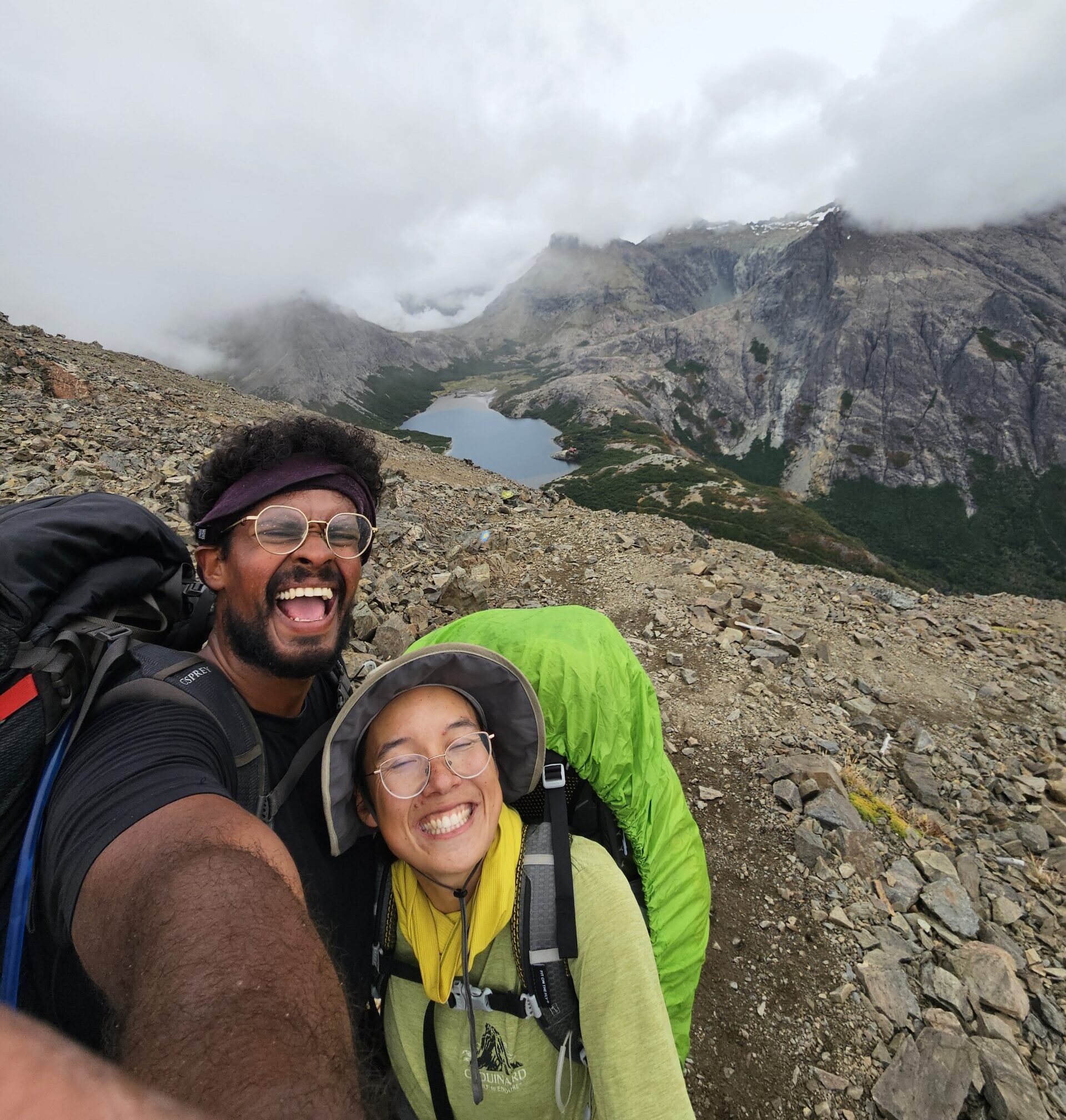 As above, the track continues on around the laguna and up the first pass. The first uphill section is just a tough slog upward, and you eventually will arrive at a second, smaller laguna. The next section is a bit more challenging and fun – there’s a bit of boulder scrambling to get up, using your hands and a little rock climbing. Once through the pass, there are some gorgeous views of the surroundings, so take it in for a moment before beginning your descent! The descent is pretty steep, with some sections of thick scree (fun) and some of light scree (slippery as hell). You’ll descend into the forest and skirt the edge of the valley, walking east. There’s a campground marked on the map here, if you’d prefer to wild camp off the tops, and it seemed like a really nice spot. Continue on from there to eventually start rising again – one more pass! This climb is much less technical and a lot gentler, although the descent on the otherside is again, rough, the shots of the refugio nestled in against another the laguna are very very cool.