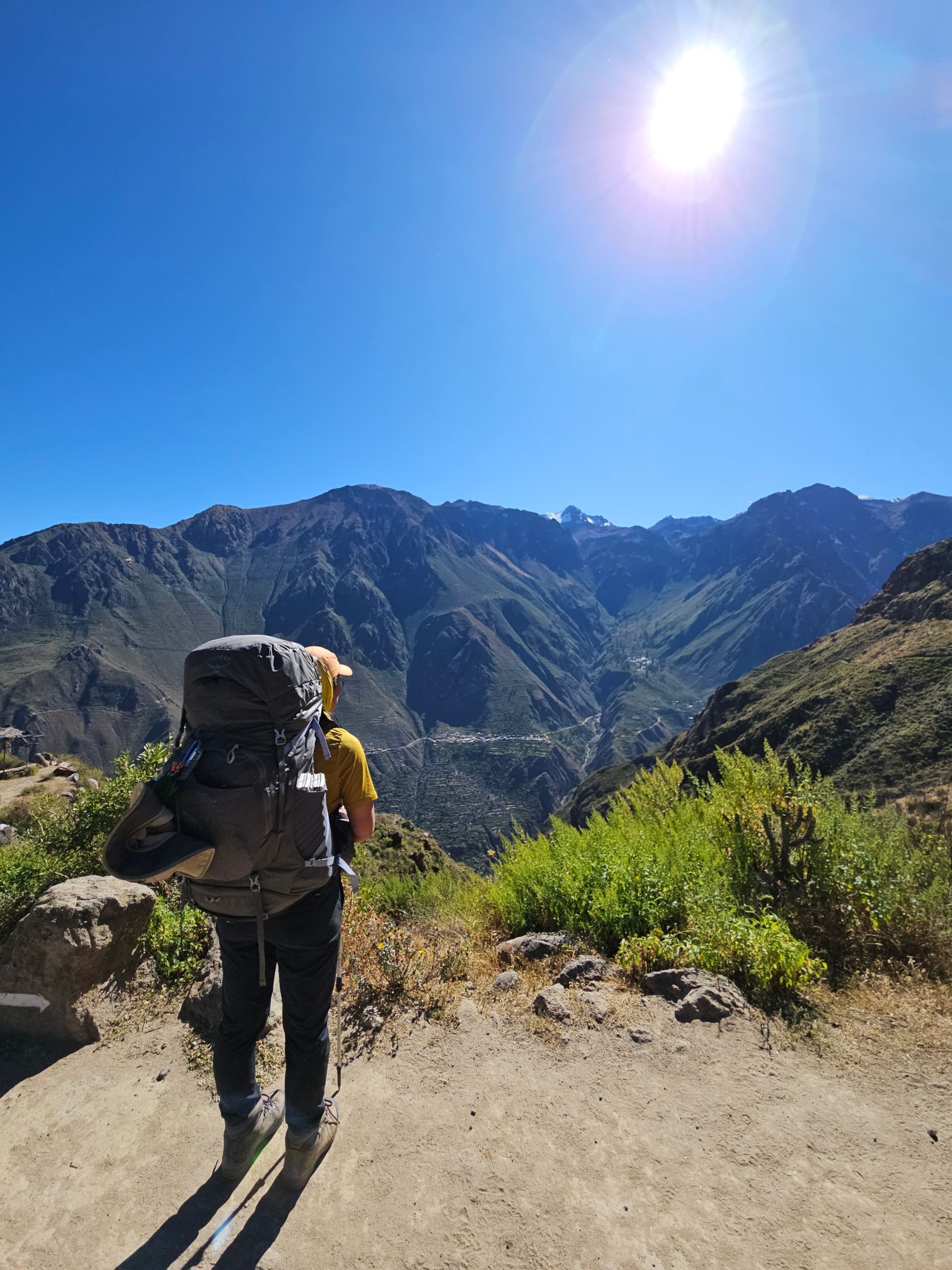 Start point is at or a few kilometers away from Cabanaconde. There are public buses to Chivay, where you must switch to a bus to Cabanaconde (they aren’t direct first thing in the morning). Otherwise, it is easy to get a lift with a tour group, who will stop for a little bit of sightseeing before you begin. The tour groups leave at around 4am, and we paid 40sol per person (though some other people only paid 30sol)